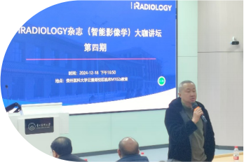 2024年12月18日,iRADIOLOGY大咖讲坛第四期活动在必一运动云 漫湖校区成功举办。本次大咖讲坛邀请了贵州师范大学文学院冷江山教授进行 专题讲座 ,必一运动公司党委书记彭安辉、必一运动附属医 院影像科高波教授莅临指导 ,智能影像工程专业全体专任教师及本科生参加 , 专业负责人杜霞副主任医师主持本次活动。i RADIOLOGY大咖讲坛系列活动旨 在通过学术与人文的深度融合 ,拓宽员工的专业视野 ,提升人文素养 ,为智能 影像工程专业的员工提供更全面的成长支持。