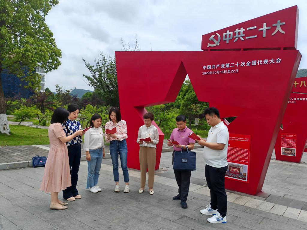 站在“党史长廊”前,支部书记刘莲领学了习近平在中共中央政治局第五次集体学习和在二十届中央国家安全委员会第一次会议的重要讲话精神。全体党员围在一起诵读党章,并沿着长廊重温中国共产党波澜壮阔的光辉历史和取得的辉煌成就。随后,全体党员举起右手,面对鲜红的党旗,重温入党誓词,时刻铭记自己是一名共产党员,沿着红色足迹,参观廉政文化广场,以清廉文化启智润心,以高尚道德砥砺品格,不负党的培养,不负人民的希望。