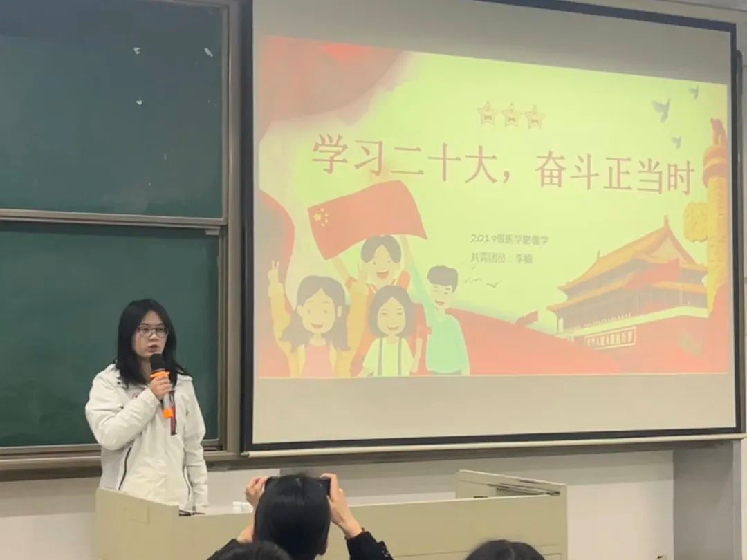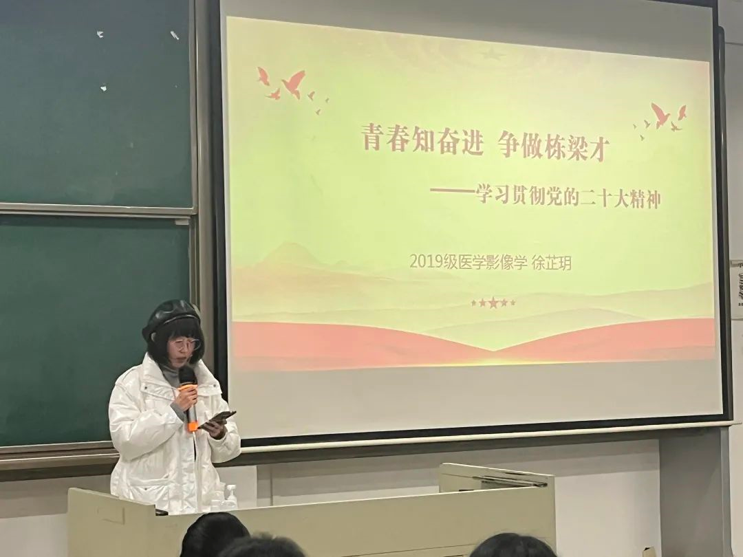 学习二十大报告,感悟伟大变革。员工党员、入党积极分子紧紧围绕党的二十大召开的重大意义、报告的精神内涵,学习宣传党的二十大精神为主题进行演讲,以青年员工的独特视角,畅谈学习体会,表达感党恩、听党话、跟党走的坚定信念,把党的二十大精神内化于心,外化于行,抓住时代机遇,树立远大志向,时刻保持昂扬斗志,学好理论知识,夯实基础,努力成为一名有医德、有技术的医生,在自己的工作岗位上为祖国的发展和建设添砖加瓦。