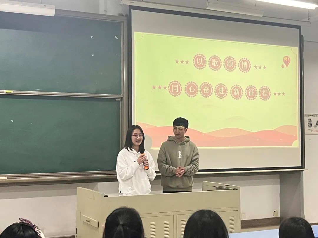 奋进新征程,建功新时代。“伟大的中国共产党,风华正茂,山高水长 昂首挺立在新时代的征程上……”在活动尾声,罗露瑶和冯儒恒两位党员带领全体党员共同唱响歌曲《领航》,全情投入,共情共鸣,用歌声致敬党、祝福祖国,以歌颂情,抒发同学们永远跟党走,同心奋进新征程的豪情壮志。