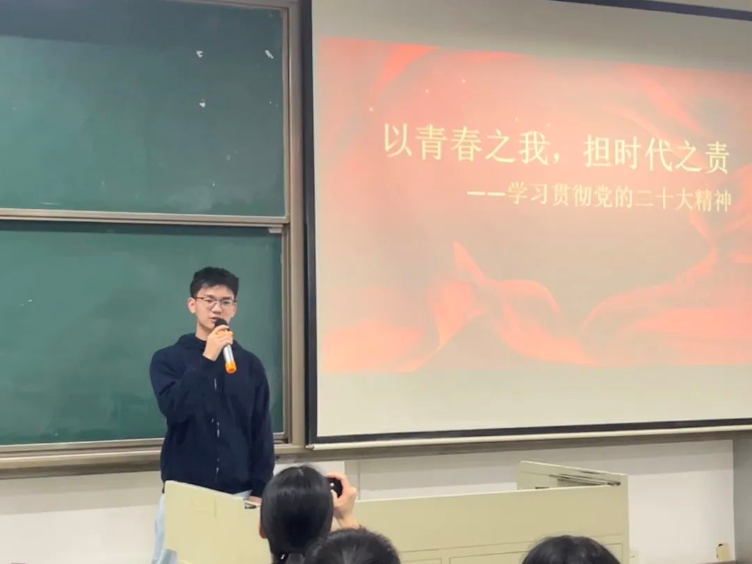 细读二十大报告,感悟思想伟力。支部书记陈丽带领同学们诵读原著、学原文、悟原理,充分认识党的二十大精神的重大意义,准确把握党的二十大精神的核心要义,感悟思想伟力,坚定理想信念。在诵读习近平总书记对青年的寄语时,陈丽深情地说:“希望同学们始终牢记习近平总书记对青年的殷切嘱托和期许,将党的二十大精神全方位融入到学习、工作和生活中,踔厉奋发、勇毅前行,用奋斗的青春在全面建设社会主义现代化国家的火热实践中绽放绚丽之花。”