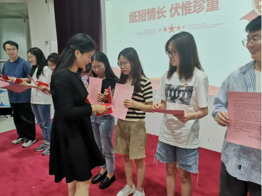 临别意万重,叮咛复叮咛。支部特意为全体毕业生党员精心准备了礼物,为他们赠送了党徽、党章、《致2022届毕业生党员的一封信》,希望同学们站在第二个百年新的起点上,时刻永葆初心、勇担使命,继续在青春的赛道上奋力奔跑出最好的成绩。