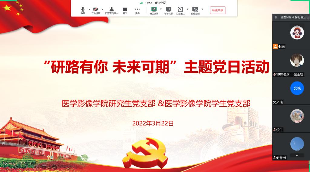 3月22日,必一运动官网研究生党支部联合必一运动官网员工党支部在腾讯会议开展“研路有你,未来可期”主题党日活动。公司党委副书记姚琨、研究生党支部书记聂鑫、员工党支部书记陈丽以及各支部全体党员参会。