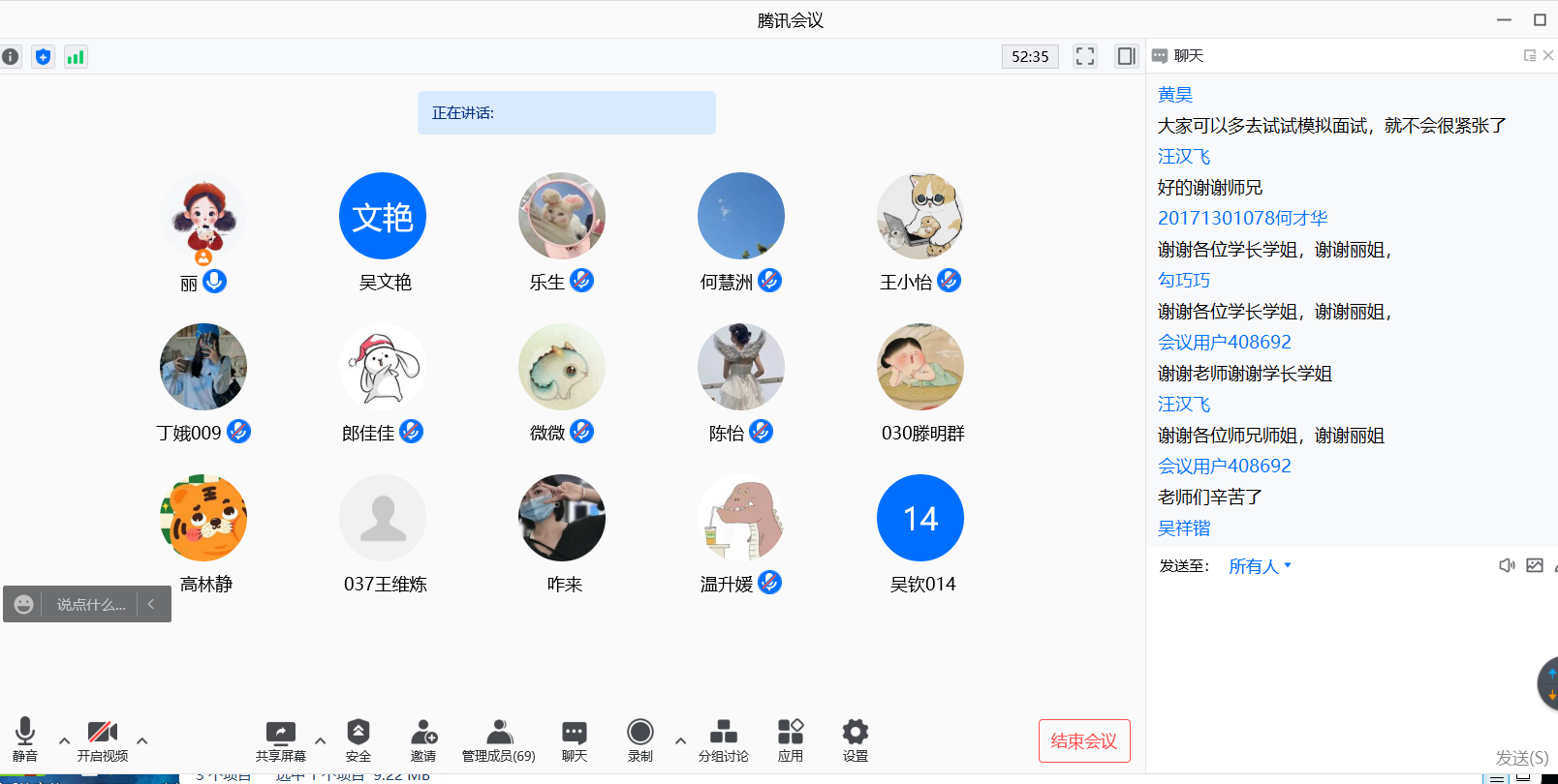 黄昊从考研复试的准备、复试流程等方面进行介绍,以自身复试经历为例,为大家提供具体的复试指导,帮助大家梳理复试过程中的重要环节。徐丹丹从复试心态方面,为同学们分析了在复试过程中应如何提升自信,从容面对复试,并提醒同学们要注重语言表达流畅,着装得体大方,增加印象分。李硕重点介绍了考研复习方法,希望同学们保持学习的热情,把学习当成一种持续性的行为,不管是复试期间还是在读研期间都能专注学习。