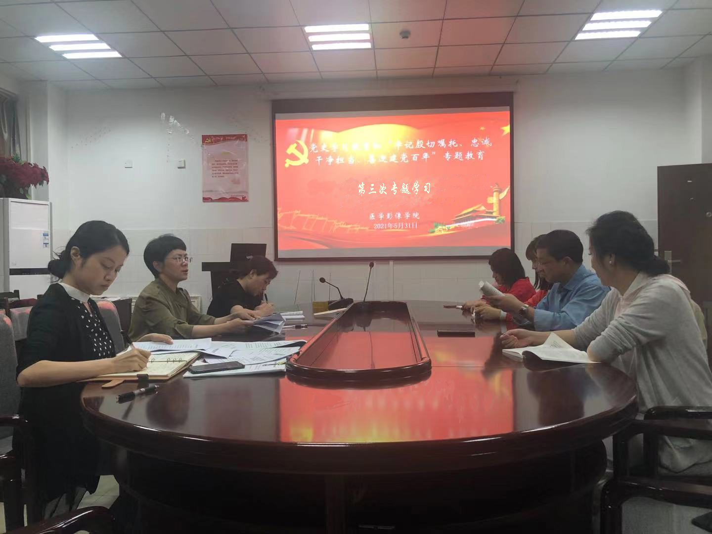 5月31日下午,公司党委开展党史学习教育和“牢记殷切嘱托、忠诚干净担当、喜迎建党百年”专题教育第三次专题学习。公司党委书记李雪梅主持,学院班子成员、各支部书记参加。