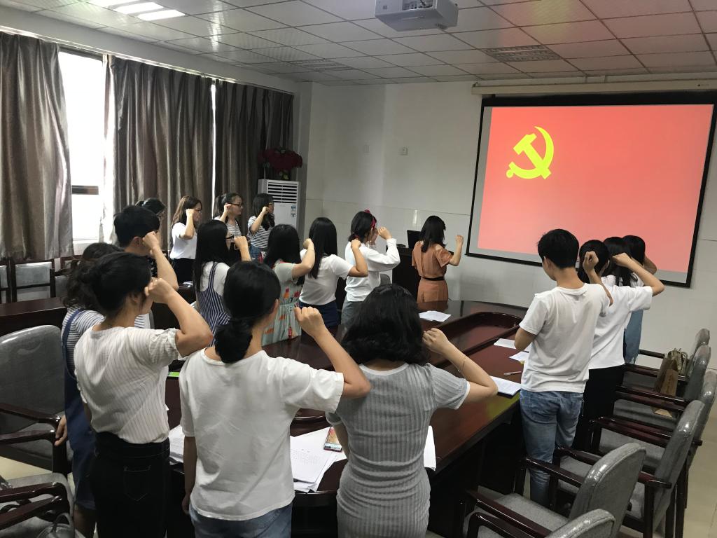 姚婵首先向大家介绍了毕业生党员组织关系转接的流程和注意事项,接着用一张张照片带领大家回顾了历次微党课学习、党的知识竞赛等“三会一课”的学习,要求毕业生党员们按照共产党员的标准严格要求自己,不忘初心,砥砺奋进,不论是在校时还是离校工作以后,努力保持党员的先进性,时刻发挥党员的先锋模范作用。活动最后,全体毕业生党员举起右拳,重温了入党誓词。