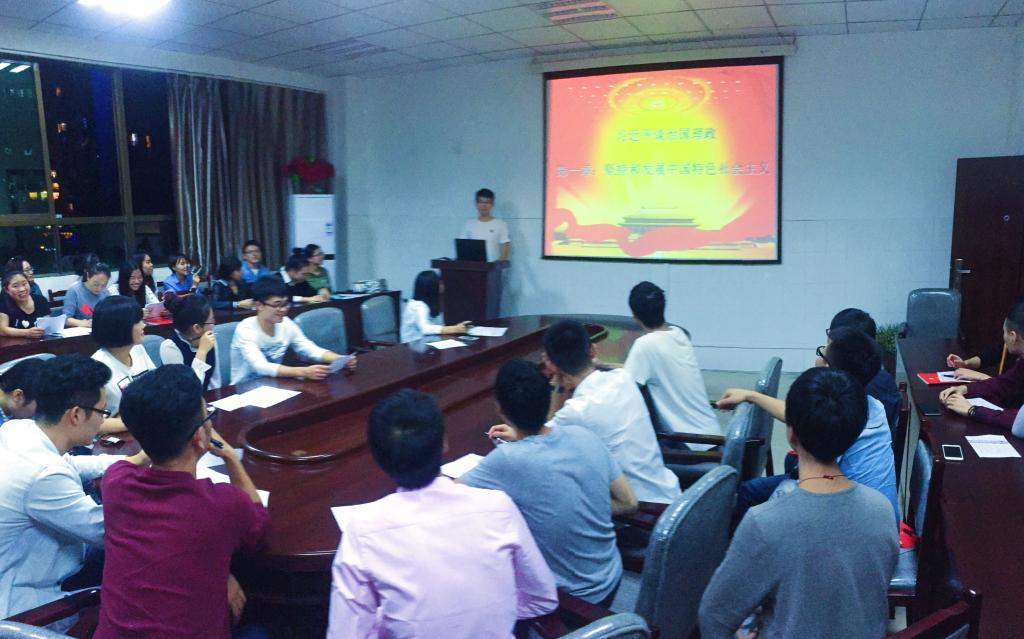 首先,来自2013级的邢兆杰同学带领大家学习了《习近平谈治国理政》第一章“坚持和发展中国特色社会主义”,提出当代共产党人的任务,就是继续把坚持和发展中国特色社会主义这篇大文章写下去。接着来自2012级的潘奇仕同学和来自2013级的杨国敏同学分别从自身角度出发解读党规党纪,分析党员不遵循党规党纪的原因,并与同学们就如何遵守党规党纪的问题进行了激烈讨论。
