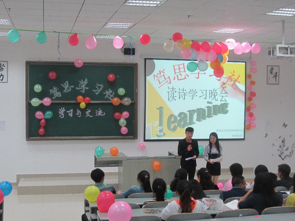 为缓解学习压力,传承中华优秀传统文化,增强影像学子的自信心和表达能力,公司笃思学习社于5月21日晚7:30在花溪新校区4306教室开展了“读诗学习晚会”。