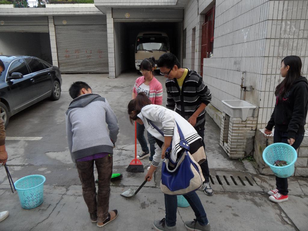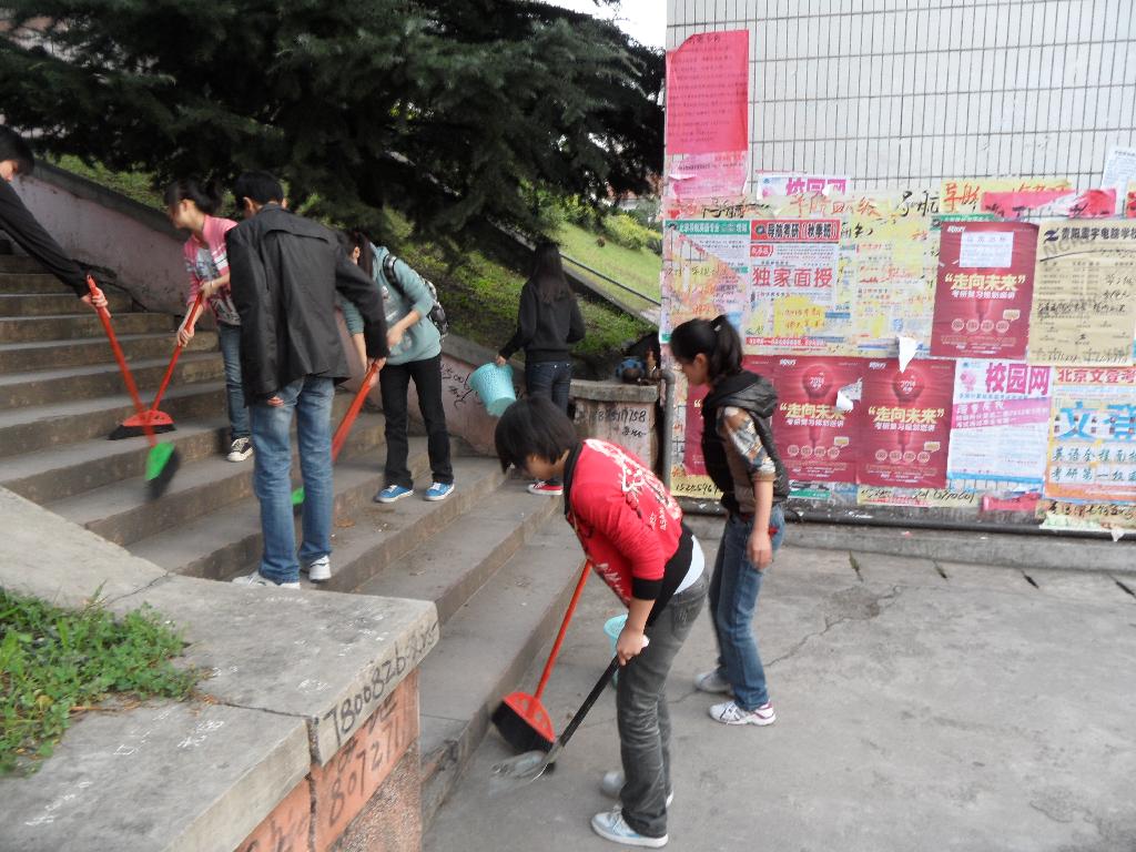 为此,影像系党总支在2012年10月23日下午组织我系各年级的所有党员、预备党员以及发展对象对学院解剖楼前至普通教室周围进行了清理打扫。下午5点,参加清洁活动的同学都已准时在旗杆下集合,每个人都拿了清洁工具,在员工党支部书记姚琨的带领下开始打扫。虽然天气有些冷,但是所有人都干劲十足,只见扫帚在同学们的手中来回摆动,地面立刻就干净如洗。不一会儿,同学们都满头大汗了,欢声笑语也响彻整个校园……为时一个多小时的大扫除圆满结束时,大家都已经疲惫不堪,但是看着一尘不染的校园,每个同学脸上都洋溢着笑容。
