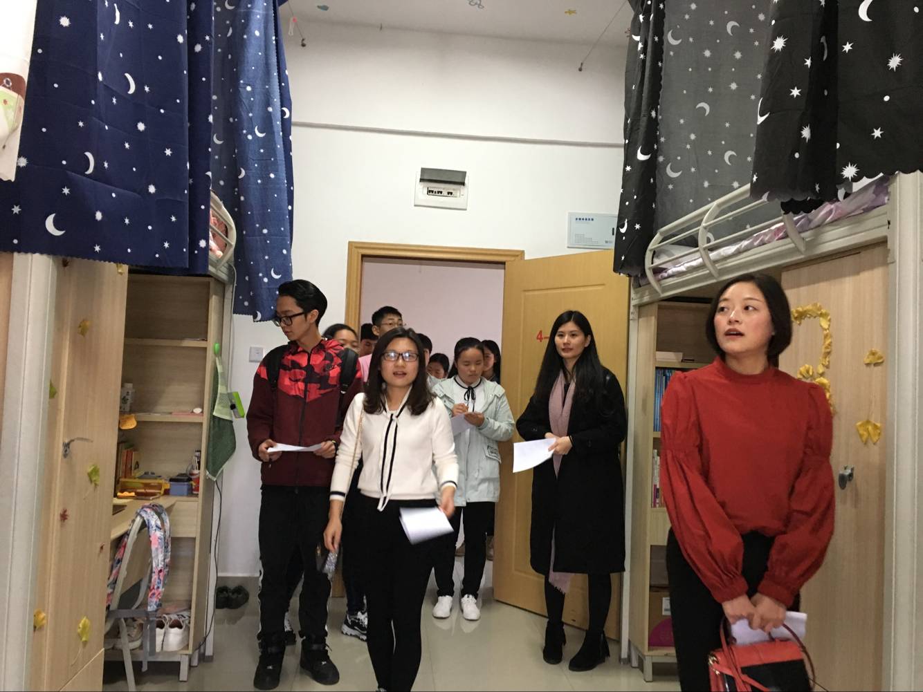为进一步推进寝室文明建设,营造积极向上、温馨舒适的寝室文化氛围,培养员工良好的学习、生活习惯,丰富老员工课余生活,全面提高老员工综合素质,学院于2017年11月中旬举办了“‘影’室之家 秀我心灵”为主题的第五届寝室文化节活动。本次活动由2016级医学影像学、2017级医学影像学共计68个寝室参与评比,学院员工科科长李丹老师带队,分团委书记姚婵老师,辅导员陈丽老师和院员工会主要干部担任此次活动的评委。