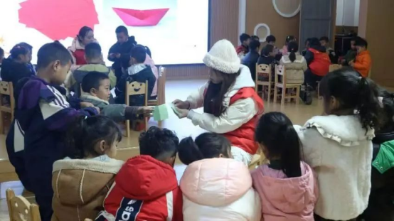 宣讲团以一场别开生面的小话剧作为开场引出活动的主题。在问答环节时,孩子们都争先恐后的举手回答,气氛热烈而活跃。实践环节,孩子们动手折起了五角星和小船,一张张彩纸在孩子们手中渐渐变成了具有象征意义的红色物件,小小的身子坐得笔直,眼中闪着光芒,对革命先辈事迹求知若渴。