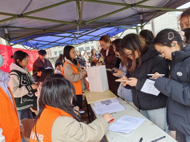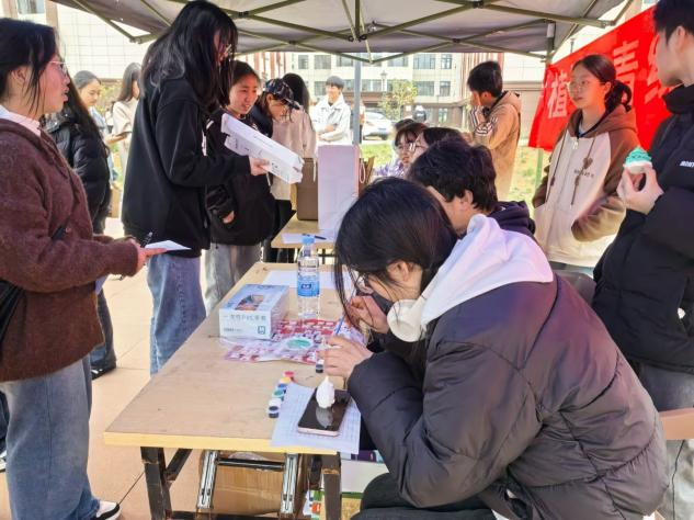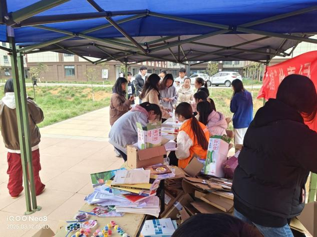 参与者们仅需携带可回收物品,通过这些物品的重量作为兑换标准,来换取精美的毛绒织花。活动现场排起长队,同学们都积极加入到这个活动,共同携手为绿色未来贡献一份力量。