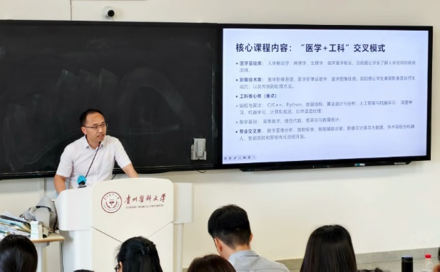 阮志兵教授为同学们进行了专业概述,强调智能影像工程专业是医学与工科交叉的新兴领域,具有广阔的发展前景和独特的学科复合型优势。他指出,专业拥有良好的教学与实践平台,同学们需要具备持续学习能力、实践参与意识、良好的沟通习惯,付出更多努力掌握交叉学科知识体系,提升专业素养,并希望同学们对自身成长和专业前景保持信心。罗心源老师在与员工的日常相处中,注意到同学们的优秀与迷茫,并指出迷茫是正常且积极的现象,这反映了同学们在思考并追求进步,同时希望同学们正视迷茫。倡导员工培养自主学习能力,鼓励主动思考、积极提问,并及时向老师寻求指导,以把握正确的学习方向与方法。希望同学们认真听课、积极交流,深入感受智能影像工程专业的魅力。