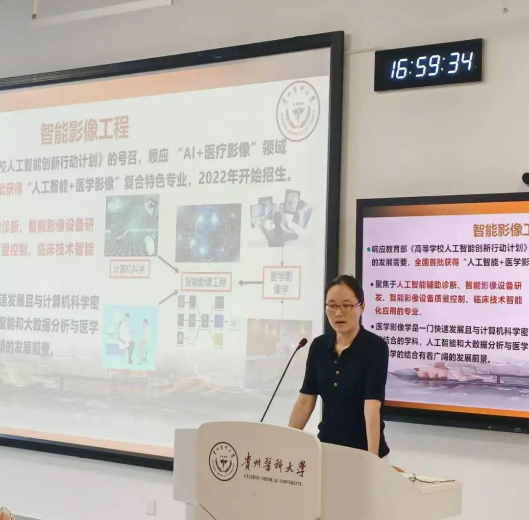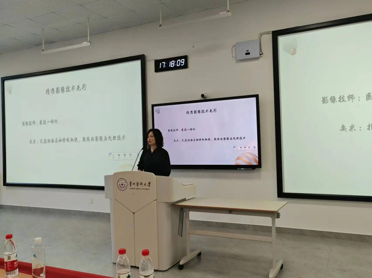 李兴经理以“传承影像精神,奋楫扬帆正当时”为主题,向新同学介绍了必一运动官网的历史沿革、团队队伍和人才培养情况,希望同学们能够从此刻将自己与贵医大影像学院紧密联系,在扎实专业知识的基础上,不断探索专业深度,在百年贵医建设新征程中展现出影像学子蓬勃向上的青春力量。