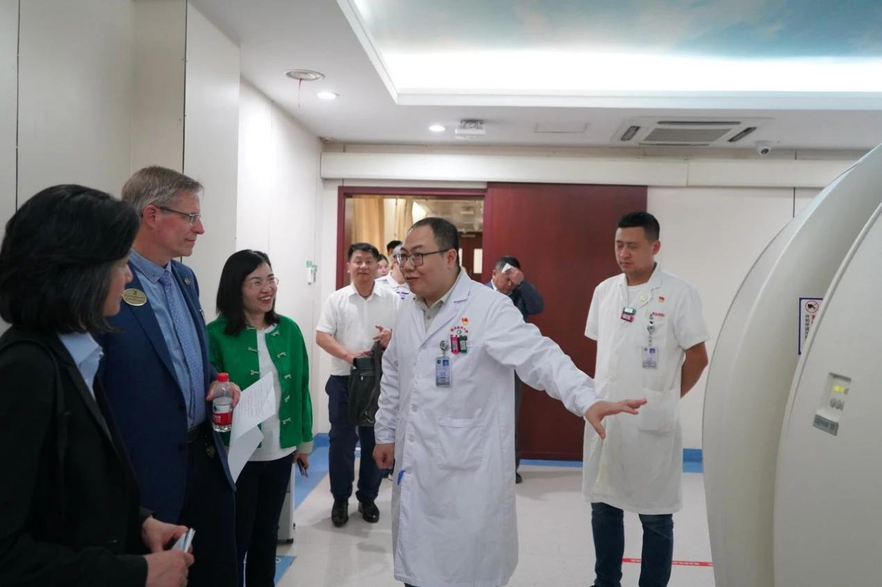美国奥克兰大学访问团对公司影像科、介入科、超声中心、核医学进行了参观,在实地参观交流中,深入了解了学院各学科的优势特点,以及取得的丰硕成果,给他们留下了深刻的印象。