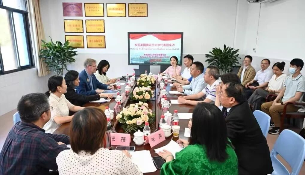 彭安辉对美国奥克兰大学访问团的到来表示热烈欢迎,并简要介绍了学院发展历程,员工工作特色和亮点。