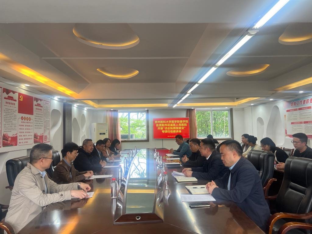 为贯彻落实教育部、省教育厅关于“访企拓岗”促就业专项行动工作部署,促进学院毕业生高质量就业,2024年5月9日,公司党委书记彭安辉一行赴贵阳市花溪区人民医院开展“访企拓岗促就业”专项行动。