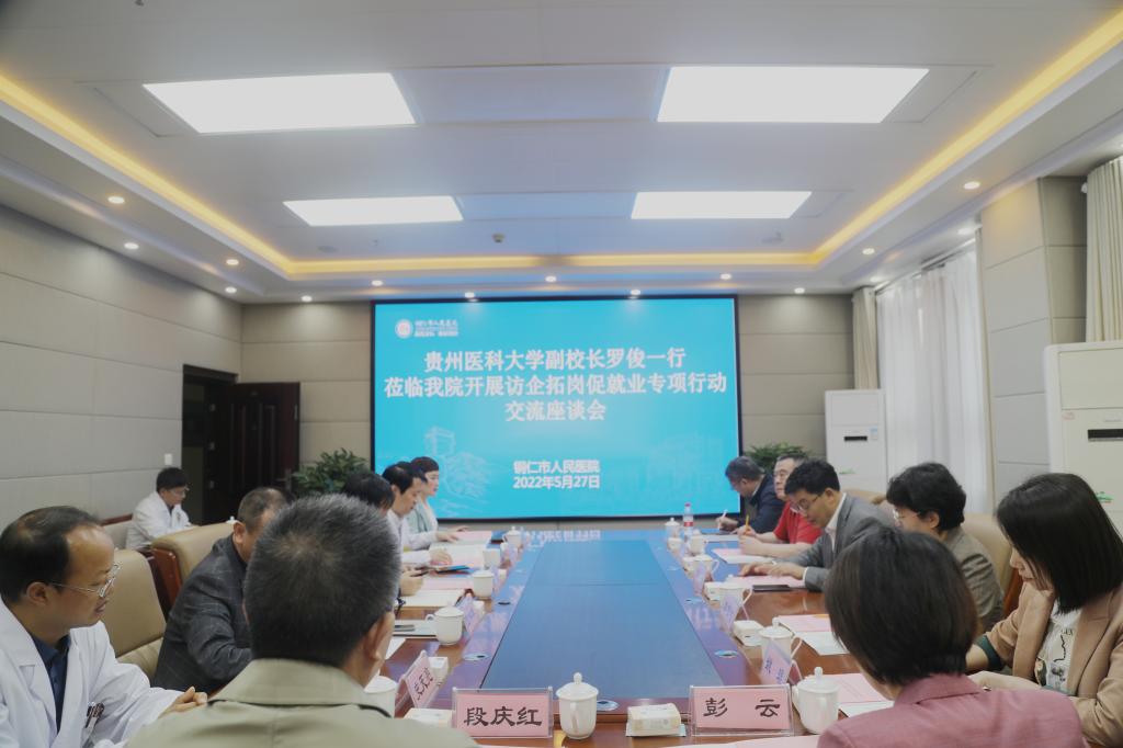 5月26日、27日,副董事长罗俊带领公司党政负责人等一行先后赴贵医二附院、凯里市第一人民医院、黔东南州人民医院以及铜仁市人民医院,开展“访企拓岗促就业”专项行动。