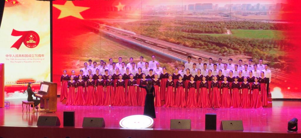 为热烈庆祝新中国成立70周年,弘扬爱国主义教育,激发广大师生的爱国热情,9月29日,公司党委举办了以“歌唱祖国 献礼70华诞”为主题的合唱比赛。公司党委高度重视,把此次活动作为深入开展“不忘初心、牢记使命”主题教育的重要任务,公司党委书记李雪梅、经理周石、副经理李兴、副书记姚琨带领公司70名师生组成合唱队,用歌声献礼祖国70华诞,抒发对祖国的热爱和崇敬之情。