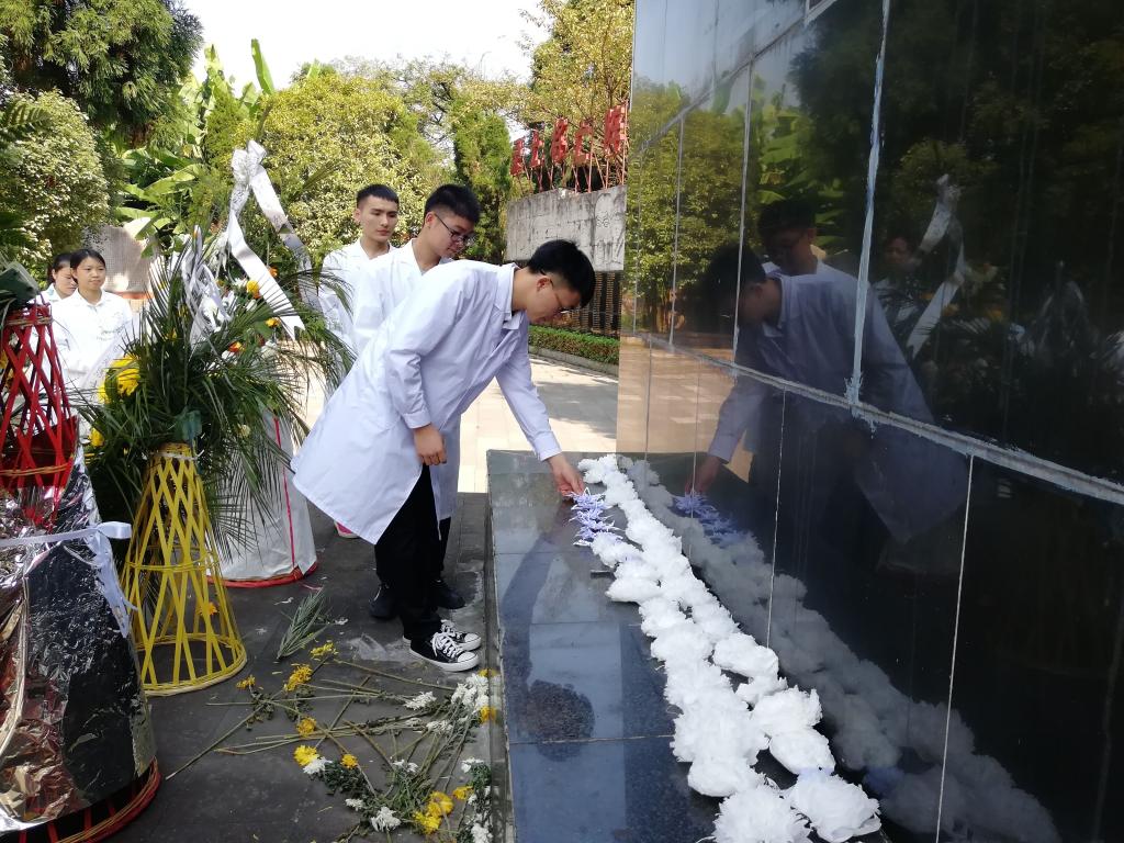 上午10点整,同学们怀着崇高的敬意在纪念碑前整齐列队,向长眠于此的革命先烈低头默哀,表达缅怀之情。随后,大家来到历史纪念碑前,瞻仰纪念碑上一个个年轻的名字。曾经,他们是无名之辈,却以“无名之辈”之义铸一东方强国。瞻仰结束,大家有序的将自己胸前的白花轻轻摘下,小心翼翼的放在了墓碑前,以此来表达:人走茶不凉,传承爱国主义精神我们一直在路上。