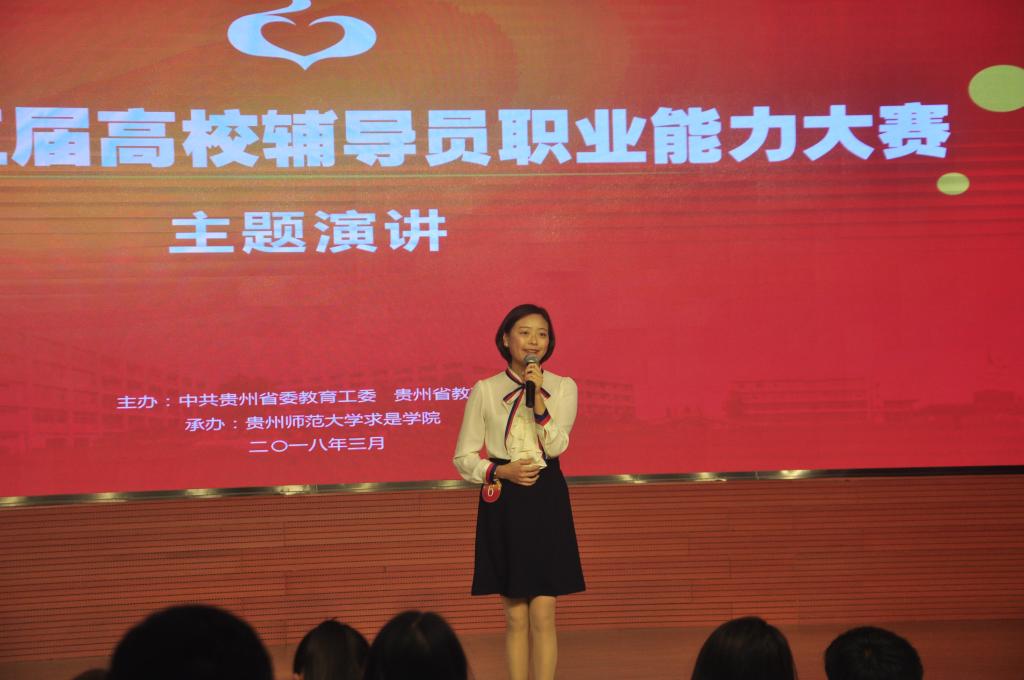 3月9日至11日,由中共贵州省委教育工委、省教育厅主办的贵州省第五届高校辅导员职业能力大赛在贵州师范大学求是学院举行,来自全省62所高校的73名辅导员参加比赛。公司辅导员李丹代表公司参加此次大赛。