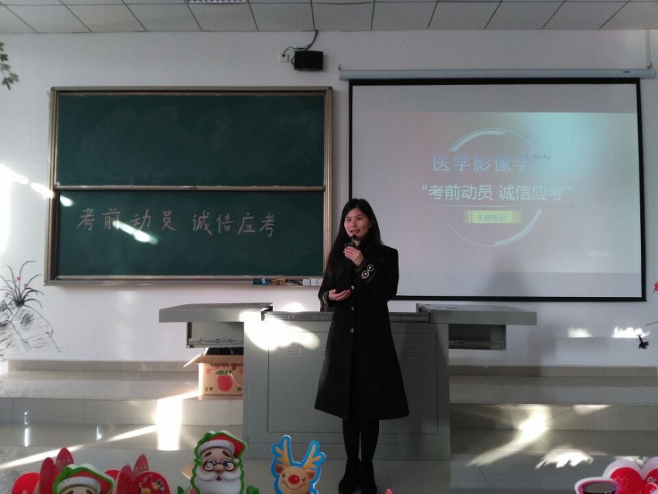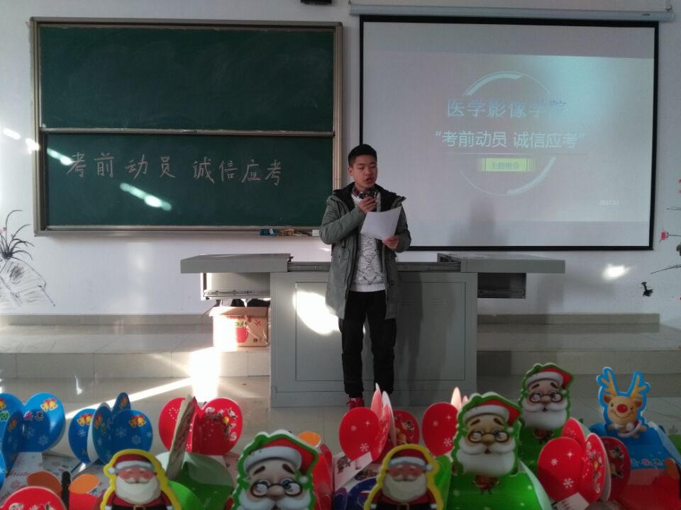 期末将至,为了督促同学们以积极的姿态迎接考试,使大家认真对待考试,树立诚信考试的观念,营造公平、诚信的考试氛围,2017级医学影像学于12月22日在南校区7304教室召开了“考前动员 诚信应考”主题班会。
