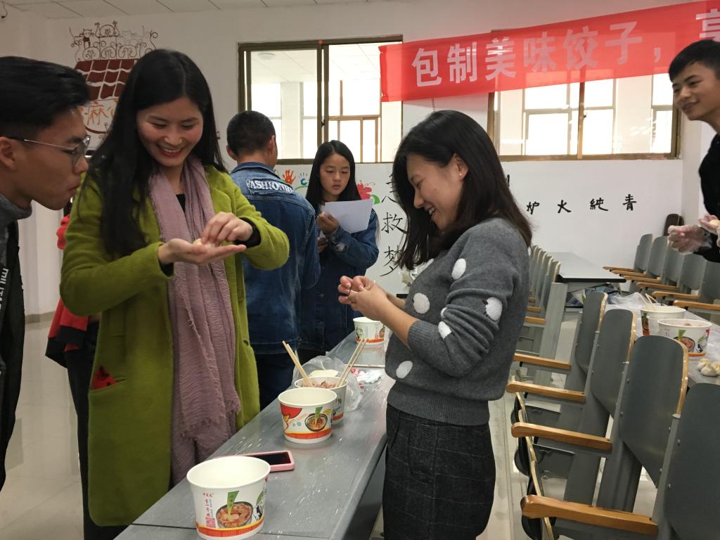 11月7日,恰逢立冬。为了凝聚班级力量,增进师生、同学间的友谊,让大家从繁忙的课业生活中,放松自我,劳逸结合。2017级医学影像班在南校区7304举行了“增进师生情谊·凝聚班级力量”——师生齐动手包饺子主题活动,学院分团委书记姚婵老师和辅导员陈丽老师参加了活动。