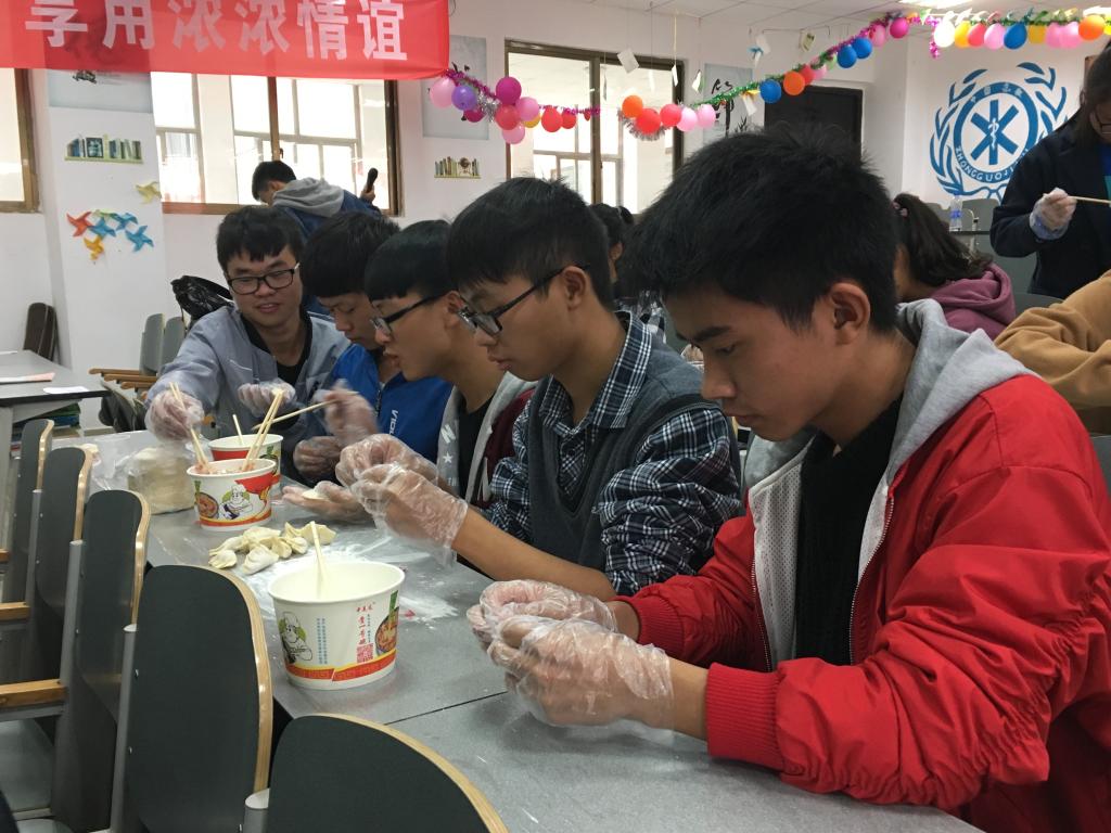 活动伊始,进行了趣味十足的包饺子比赛,共有11组参赛队伍。在紧张而又活泼的比赛氛围中,我们看到了参赛选手们脑洞大开的创意,有包制“太阳花”、“玫瑰花”、“蛋挞”、“小鱼”、“万事如意”等创意,获得最具创意饺子奖,有的选手通过心灵手巧的一双手包制出非常精致好看的饺子,获得了最美饺子奖,有的队伍齐心协力,在10分钟内包制出110个饺子,赢得包饺子速度比赛的胜利。比赛结束后,姚老师和陈老师与全班同学齐动手包制饺子,短短的40分钟共包制了2500个饺子,让大家感受到了集体力量的震撼。