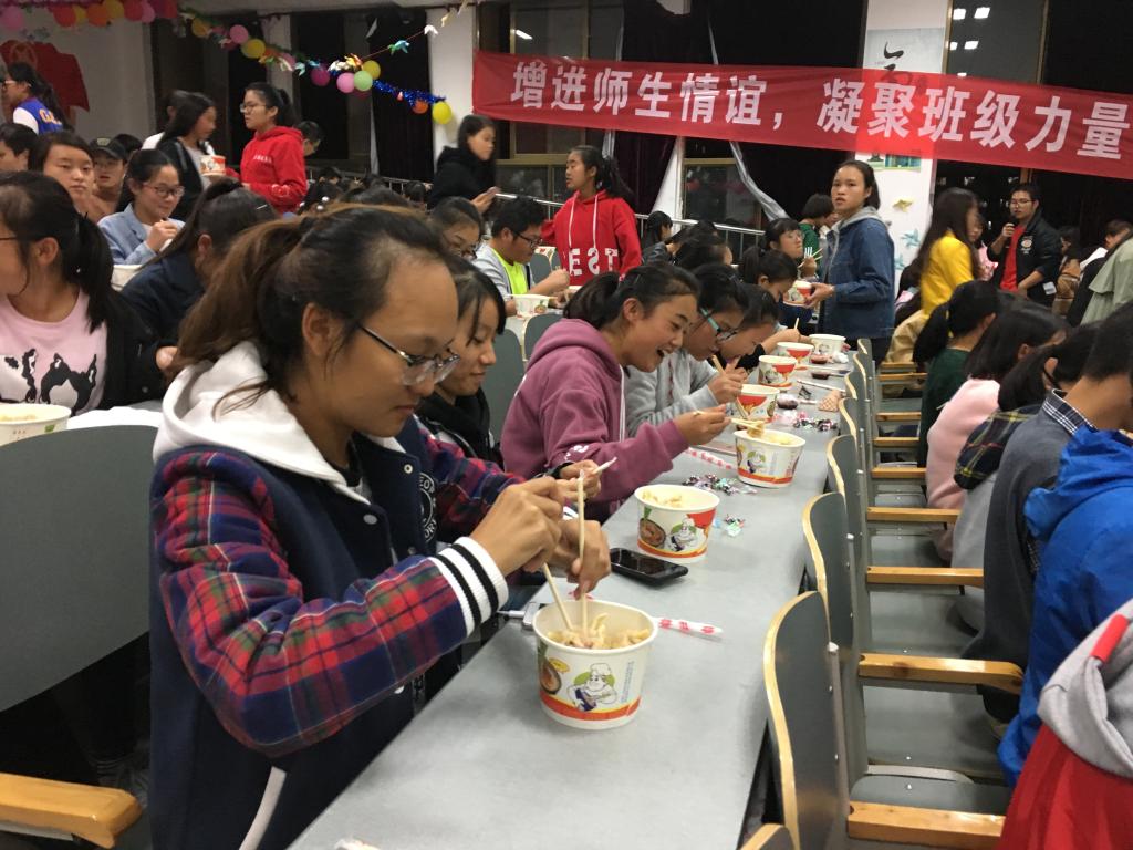 为了让此次班级活动更有氛围,同学们还精心准备了才艺表演,有陶笛演奏、吉他弹唱,还有动感的啦啦操表演,精彩纷呈的节目表演,让人目不暇接,眼足饭饱,期间有些兴致高涨的同学,自己主动上台献歌一曲,博得大家热情的掌声和尖叫声,场面十分活跃。