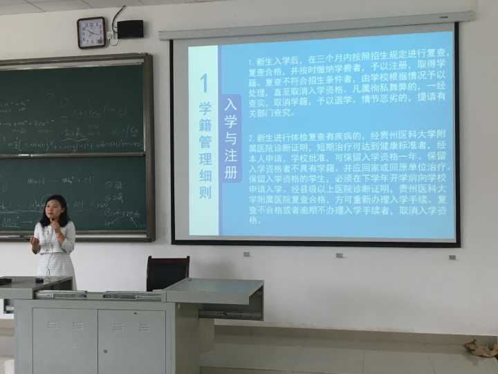 为促使广大新生尽快适应大学的学习和生活,切实强化新生纪律作风,培养良好的独立意识,完成从一名高中毕业生向老员工的转变,必一运动官网于9月8日下午17:00在南校区4401教室开展了“学习手册·认识贵医”的主题班会学习。辅导员姚婵及2016级全体员工参加。