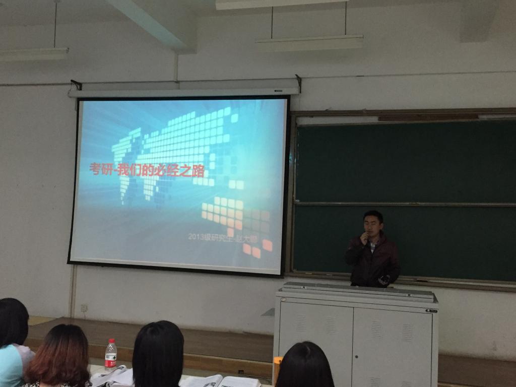 交流会中,研究生代表们就个人的考研历程向在座的同学进行了介绍,就为什么要考研和如何考研作了详细讲解,与大家分享了考研笔试、面试的技巧和注意事项。他们强调:考研绝不是为了逃避就业压力,而是为了自己更好的发展打下基础。选择考研不能盲从,要根据自身的实际情况来做出客观的选择,一旦决定,就要围绕考研这一目标持之以恒、踏实努力。他们特别提醒同学们在报考学校和专业的选择上一定要切合实际,慎重考虑,切勿好高骛远。最后研究生代表们还就同学们提出的问题一一进行了解答。