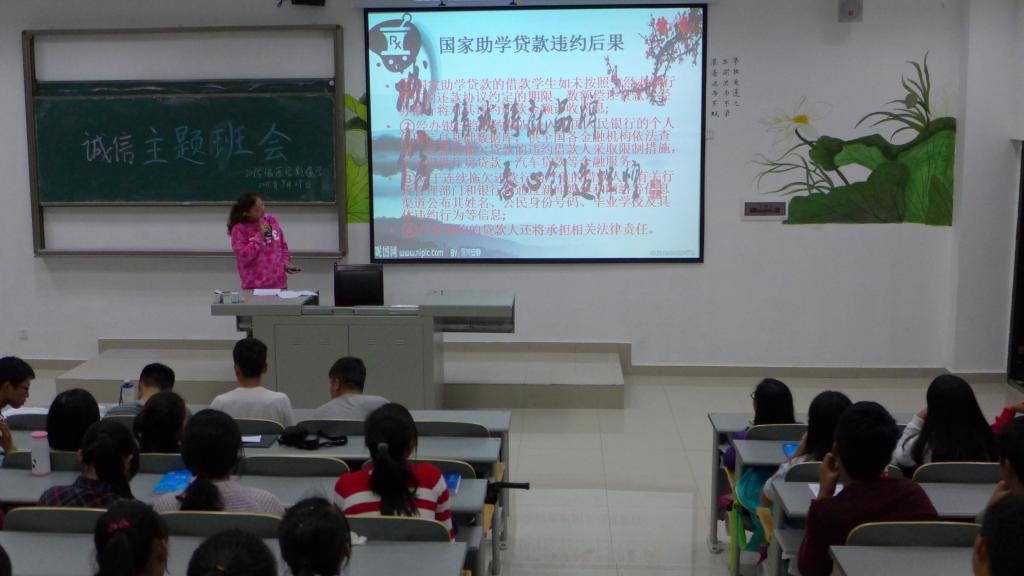 此次班会,以微电影《诚信杂货铺》开头引起了同学们对“诚信”的讨论,接着姬莉芹同学结合自身情况,向大家介绍了国家生源地助学贷款的发展历程、申请条件与材料提供等内容,最后周桓宇同学用李嘉诚诚信创业的故事和贷款失信违约的后果做对比,呼吁同学们一定自觉履行贷款合同约定的还款义务,按时足额还款付息,做到诚信立身、诚信做人、诚信处事、诚信学习。