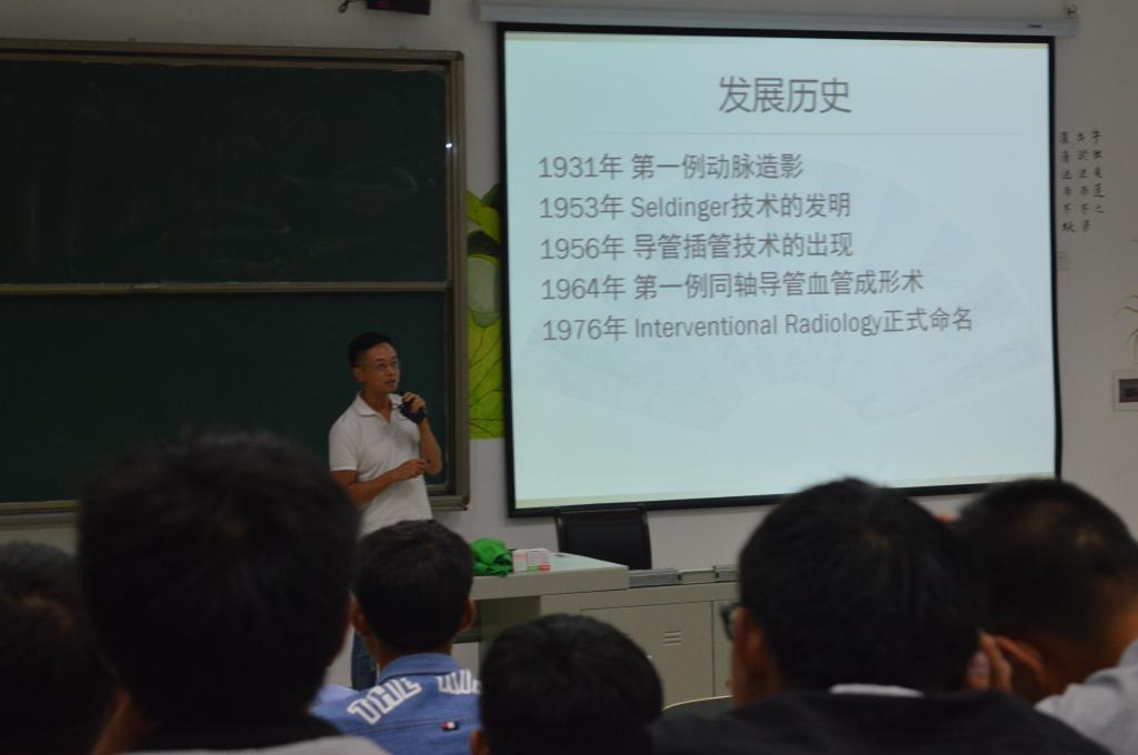 李兴副经理首先代表公司全体师生欢迎2015级同学们的到来,鼓励同学们刻苦学习、认真钻研,为自己将来的医学事业打下夯实的基础。周石经理以“乐在其中的医者之道”为题,介绍了医学是什么、怎么学习医学,同时以“贪生怕死莫走此路,升官发财莫入此门”告诫同学们要不畏艰辛,在医者之路上坚定地走下去。介入教研室副主任宋杰老师重点介绍介入放射学的内涵、发展历史、介入医疗工作设施与工作量、科研成果、学科走势及如何成为一名介入科医师。技术教研室黄明明老师详细介绍了现代医学影像技术的发展趋势和核磁共振技术的发展历程。影像诊断学教研室段庆红老师从必一运动官网的历史、科研与人才、教学条件等逐一介绍了医学影像学、影像诊断学的内涵和未来,鼓励同学们尽可能博览群书、丰富学识,努力学好外语。介入教研室安天志老师结合自身的海外求学历程与大家分享了他的人生感悟,希望同学们珍惜宝贵的大学五年学习时间,学会学习,追求和实现人生价值。会上,各位老师还和同学们进行了互动,就同学们关心的考研、规培、毕业实习等问题进行了热烈的互动。最后,李雪梅书记进行了总结,对同学们五年的老员工活提出了几点要求,并告诫同学们要细致地学习专业知识,不断提高自身的人文和道德修养,敢于质疑、勇于创新,有理想,有抱负,最终成为一名优秀的影像医生。