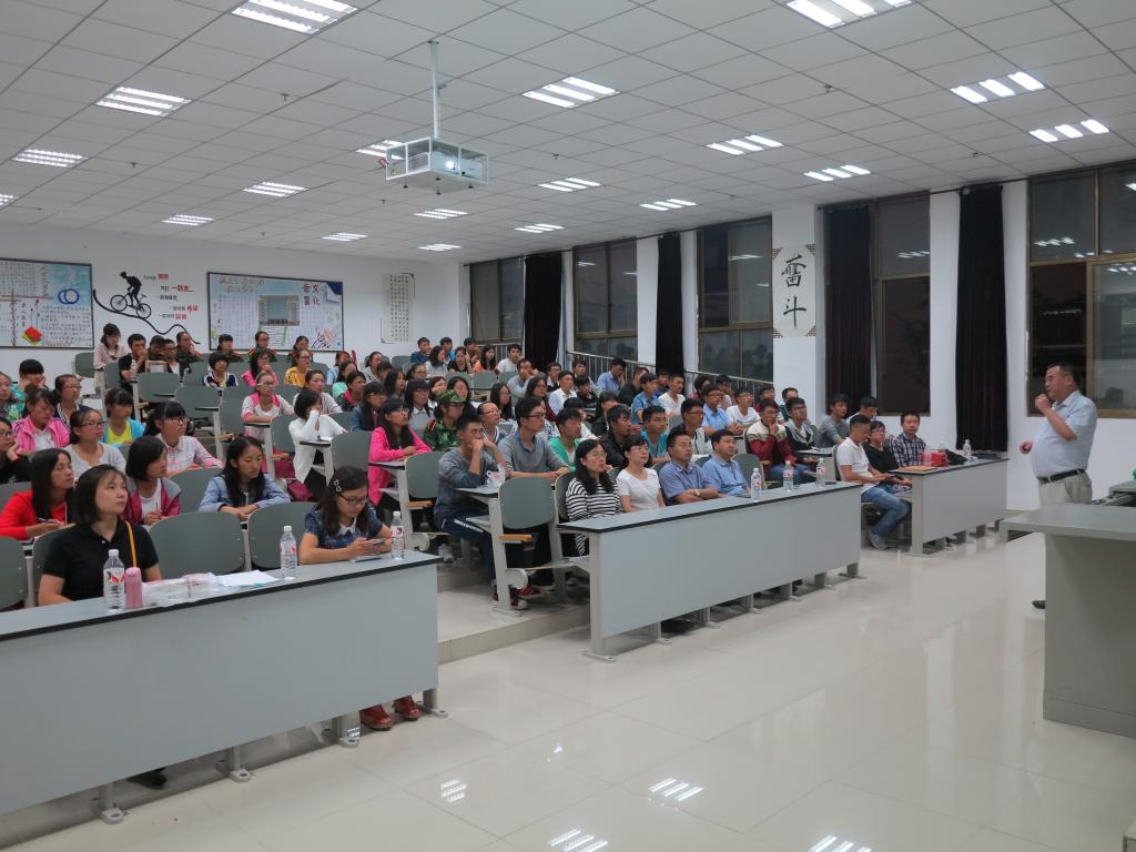 2015年9月7日晚7点,公司党委书记李雪梅、经理周石、副经理李兴、党委副书记宋玲玲及各部门、各教研室老师一行13人来到花溪新校区对2015级本科新生进行专业教育指导。