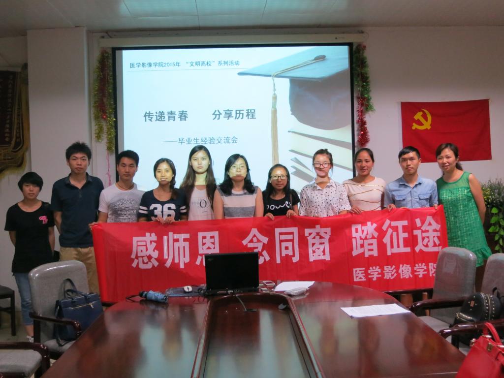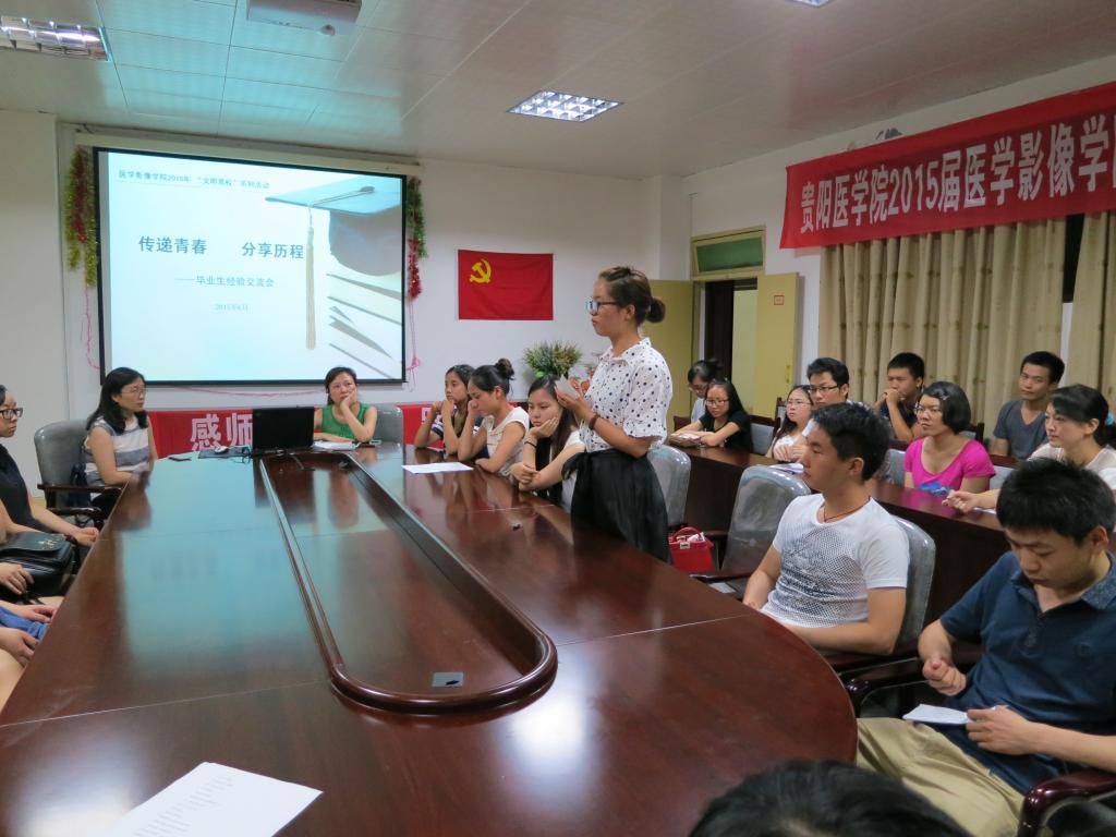 首先,来自2010级的六位毕业生代表就考研、规培、直接就业等重点、热点问题阐述并分享了自己的看法和经验。其中李静同学围绕着考研的准备、复习、心态、复试等方面分享了自己的成功经验,并向大家推荐了相关书籍资料;李轩、赵培屹、田园三位同学着重对为什么选择规培、如何准备规培考试、贵州省与外省规培考试的差异等问题进行了介绍,同时总结了自己考研失败的原因,希望师弟师妹们以此为戒;宋文红、文娟两位同学则对直接就业时如何筛选工作单位、怎样与意向单位沟通交流、面试技巧等方面详细介绍了自己的就业历程。接着,来自2011、2012级的同学就自己关心、有疑问的地方与毕业生们进行了进一步的探讨、交流。最后,低年级的同学为2010级毕业生演唱歌曲《栀子花开》、《后会有期》等,表达了他们对毕业班同学的美好祝愿。