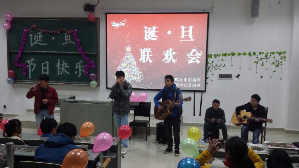 2014年12月24日晚7点,医学影像学2014级员工和辅导员姚婵在花溪校区7107教室举办“诞·旦”联欢会,在平安夜之际,提前为大家送来新年祝福。