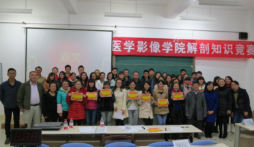 此次解剖知识竞赛在主持人陈佳妮老师简洁而生动的开场白中拉开了序幕。比赛分为必答题、抢答题、风险题以及观众互动四个环节,并在每个环节结束以后实行末位淘汰制。赛程中选手们的精彩表现不时赢来场下同学热情的欢呼和雷鸣般的掌声。看着选手们在场上一显身手,场下的观众也跃跃欲试,在观众互动答题环节中,同学们踊跃举手回答问题,使得比赛的氛围即紧张又欢乐。比赛中还出现了让大家欢笑的一幕:一支参赛队的答案中出现了错别字,这该如何给分?主持人灵机一动,请周石经理来裁决。周经理说:“普通老百姓写错了情有可原,我们医员工要求严谨,此题不能得分”,周经理的这番话让全体选手和观众信服……最后,经过激烈角逐,来自2011级的8号参赛队获得了一等奖。