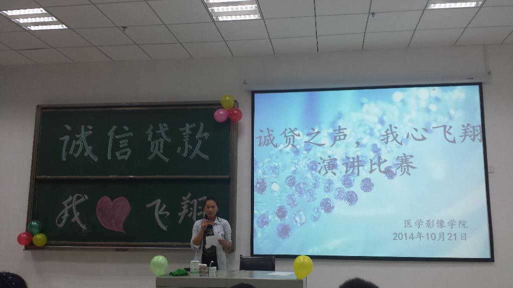 为拓宽国家助学贷款政策宣传和老员工诚信教育的渠道,提高公司老员工诚信意识,10月21日晚7点30分,公司在花溪新校区7107教室开展了“诚贷之声,我心飞翔”演讲比赛。