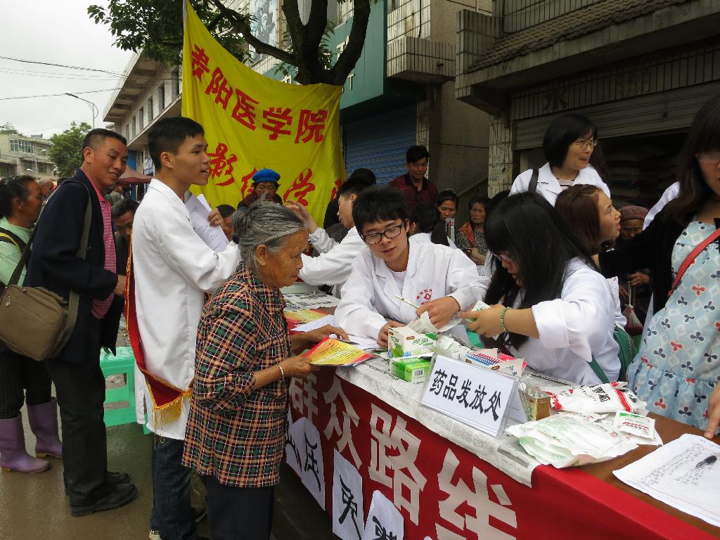 为进一步推动公司践行党的群众路线,落实惠民政策,同时引导员工积极参加志愿者服务,按照贵阳医学院2014年医疗扶贫体验活动安排,5月21日早8点,公司党委书记李雪梅、党委副书记宋玲玲携附属医院医生毛巨江、陈佳妮及部分师生共20余人前往花溪区党武乡开展义诊活动,为当地群众提供医疗服务,送医、送药、送健康,以实际行动践行党的群众路线教育实践活动,深受群众欢迎。