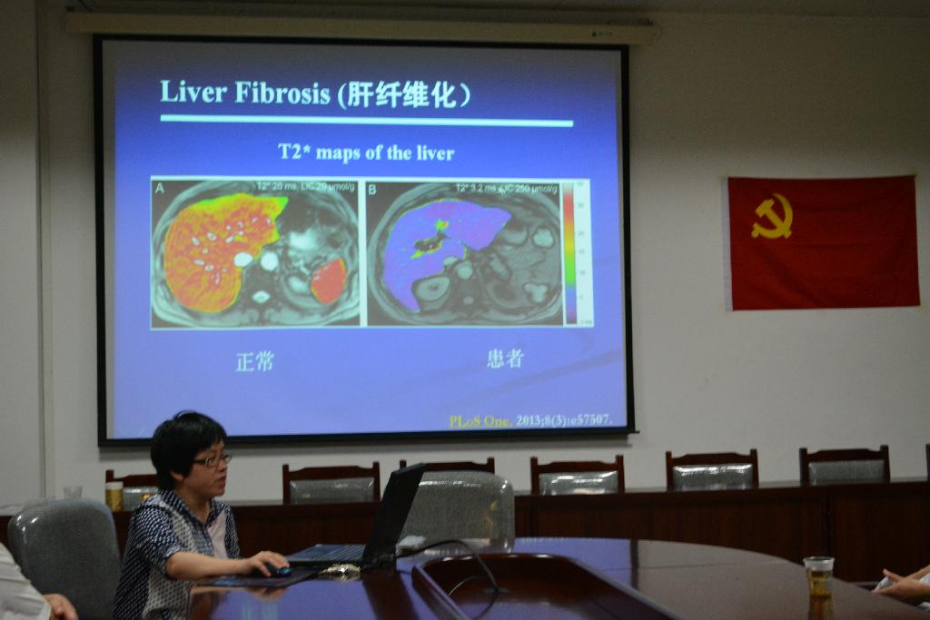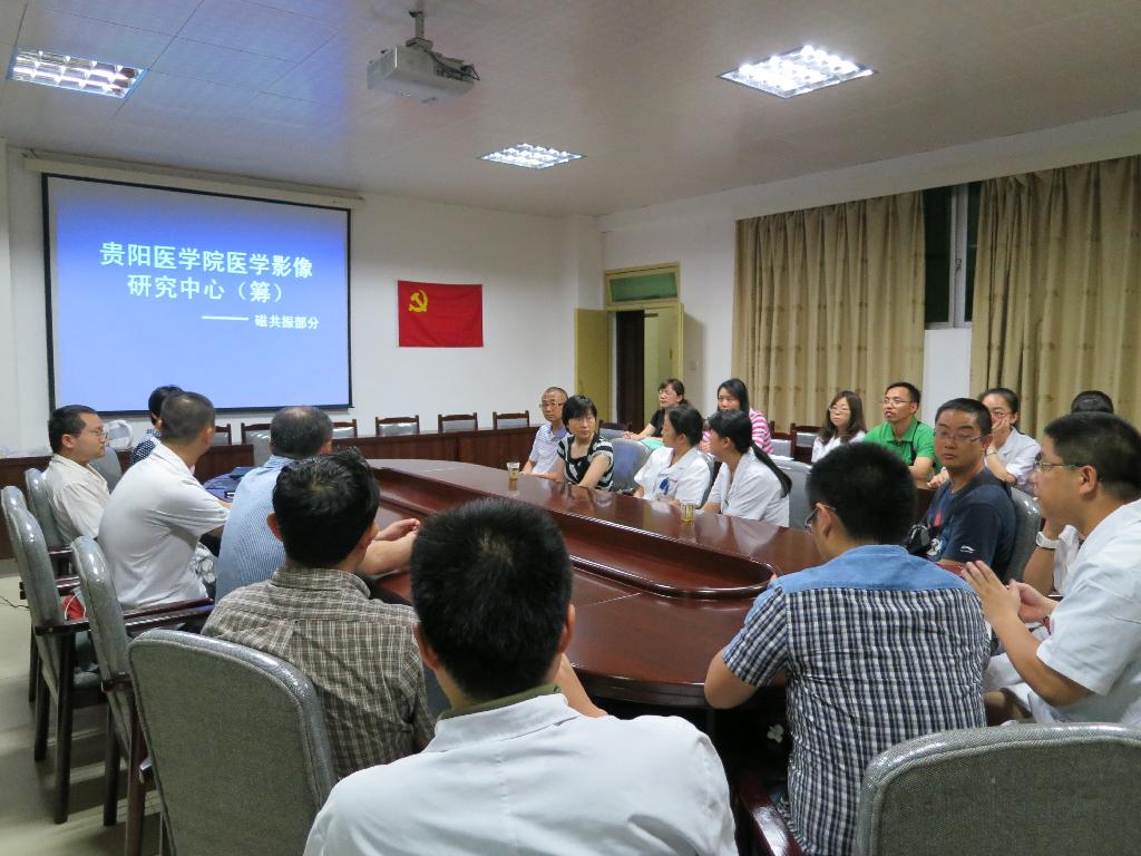 黄博士对筹建贵阳医学院医学影像研究中心的重要性进行了介绍,其中主要介绍了:近年来磁共振技术在临床科研中的研究进展,包括磁共振成像(MRI)及磁共振波谱(MRS)在神经系统、腹部、胸部、骨骼、肿瘤及心血管方面的最新应用。期间,她还饶有兴趣地介绍了通过核磁共振的实时成像技术,可以观察到人类分娩的全过程,青少年网瘾(Adolescents with Internet Addiction Disorder)以及长期的职业应激(Long-Term Occupational Stress)会引起大脑(微观及宏观)结构的改变。她还介绍了磁共振的分析软件SPM, DTIstudio以及LCmodel软件在处理图像和波谱方面的重要作用,并对相关的处理结果进行了解析。最后她还结合自己在中科院武汉数学与物理研究所攻读博士期间的工作介绍了磁共振在糖尿病脑病动物模型研究中取得的一些研究成果。