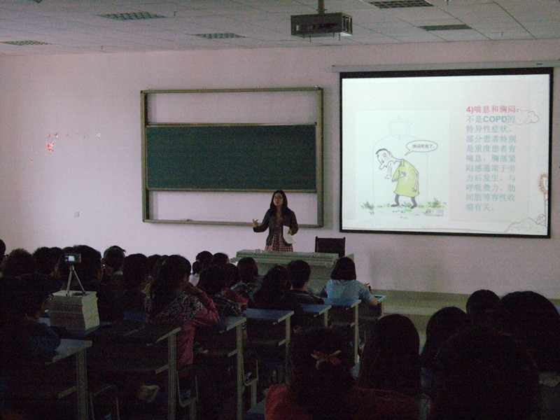 活动中,老校区笃思学习社的同学做了“慢性肺阻塞疾病”课件示教,对COPD的发生、症状及治疗方法做了详细的讲解,并以病例做诊断、治疗讨论,所有员工积极参与,会场气氛活跃。之后,对学习活动的内容、方式、指导思想进行了深入的交流,员工们认为学习社开展的学习活动要接轨临床,强化本专业知识,注重实际病例的探讨分析,形式要多样化,具有趣味性,让所有员工轻松学习,形成大家讨论,相互学习的局面。同学们表示此次活动给学院学习活动注入了动力,同时促进了全院员工的交流合作,并希望借此机会将笃思学习社活动推向全院同学积极参加的高潮。