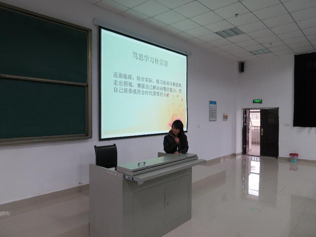 因为新老校区时空的距离,新生们参加老校区笃思学习社活动有一定的困难。老校区师兄师姐们专程为新生们量体裁衣设计了一套适合新生参与的学习活动以作抛砖引玉,宣传和引导新生们可以根据自己的知识结构和兴趣爱好自定学习内容和学习方式成立互助型笃思学习社分社。师兄师姐们向新生讲述了笃思学习社的由来发展和现阶段的学习模式。希望通过他们自身的经历给大一新生的学习方法提出一些建议。带去的活动有一定的专业性、科普性和趣味性,活动中,气氛热烈,互动积极。该项活动为新生们揭开了人体医学知识的一角。从同学们兴奋的目光中,可以看到对学习医学知识的渴望。