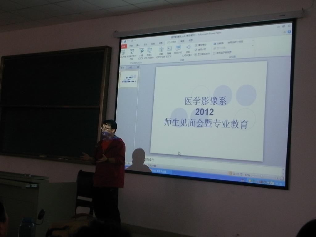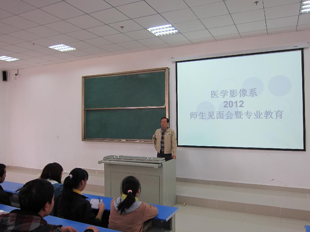 为了让同学们对我系和所学专业及其学习方法和要求有更好的了解,我系于2012年11月15日下午,在花溪新校区1603教室举行了“医学影像系2012级师生见面会暨专业教育”,我系党总支书记张依群、副书记谢红、影像技术与设备学教研室主任、副教授曹军、影像系办公室副主任、影像诊断学副教授段庆红、讲师眭贺和辅导员王倩、姚婵出席了本次会议。