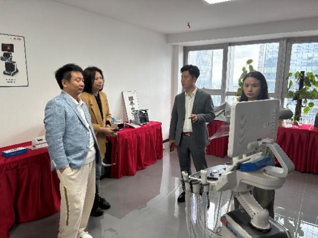 调研团队在迈瑞公司负责人陪同下,参观了企业研发中心与生产线,了解医疗设备、智能影像等领域的前沿技术成果。双方围绕员工实习实践、产教融合、课程建设等展开座谈。张帅副经理指出,迈瑞作为行业领先企业,与学院智能影像工程专业人才培养目标契合,期望通过此次调研共建高水平实践教学平台,为员工创造更多实习就业机会,提升其实践与创新能力。