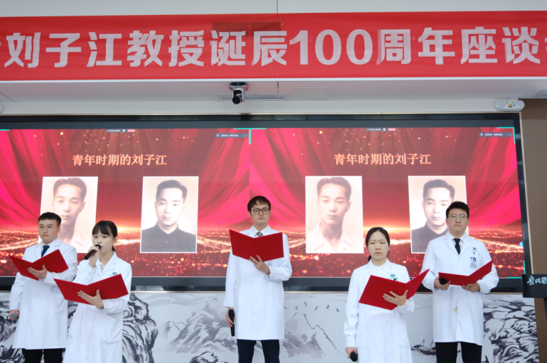 贵医附院影像科的青年医师怀着对前辈的无限敬仰,献上了诗朗诵《百年医者荣光——致敬刘子江教授》,用青春的声音诉说着传承的决心,表达对前辈的无限敬仰与深切缅怀。